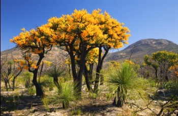 The Nuytsia tree, or Moodja, holds deep spiritual significance for the Wadandi people. Its vibrant flowers symbolize ancestors’ spirits, and visitors are asked to respect this sacred tree.